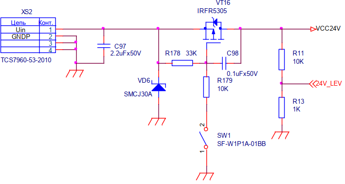 К стати, готовясь к выезду на заявку, глянул схему системной платы Штрих-М-01Ф - 24В там полевиком коммутируется, а вот его включением/выключением рулит тумблер: