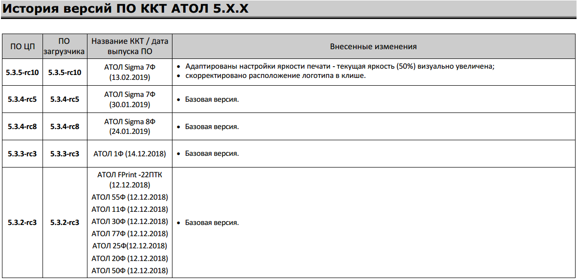 История версий ПО ККТ АТОЛ 5.X.X