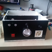 ... кусок вспененого полистирола от рекламы "теле2"ушел на корпус, вместо одного транса - заюзал 2 , включенных вторичками, причем порадовал ХХ всего 3 Вт, это по ходу трансы от шарпов  . Все отверстия проделаны, переклюки и индикация на месте , и даже вкрячил лампу на 100Вт. Осталось прикрутить трансы и провода прикрутить-воткнуть. Ну, и еще клей чтоб высох , ибо треть пузырька космофена( суперклея ) ушло, сохнет долго и глаза режет.