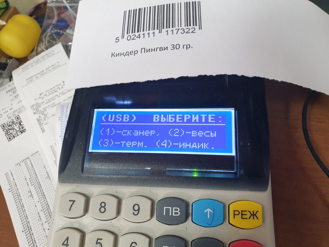 При подключении сканера касса просила выбрать что я подключаю, фото прикрепил. После чего товары стали добавляются при сканировании ШК.