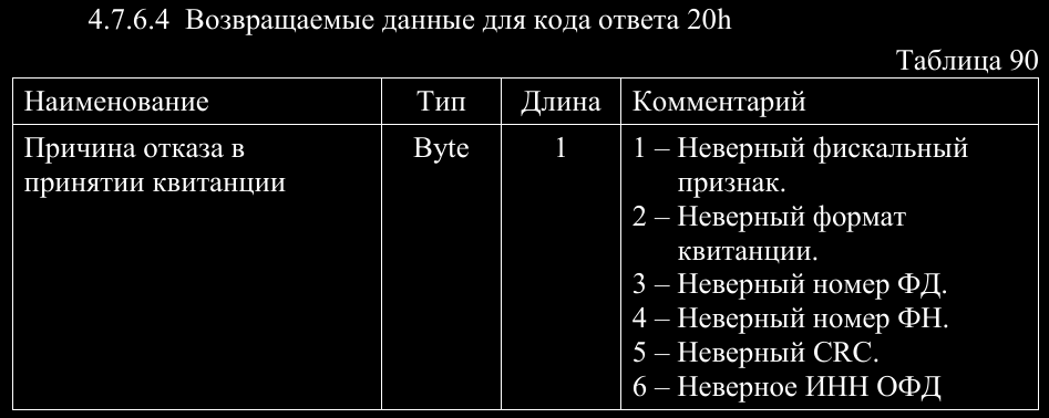 Судя по цифре 4 в поле 7, из вышеприведённой таблицы, имеем неверный номер ФН.