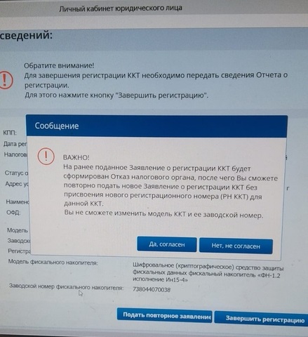 При ошибке, в заявлении можно исправить модель и ЗН ФН, ОФД.